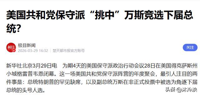 而万斯高辅助率骨子是保守派的“妥贴遴荐”,动作2024年特朗普的竞选搭档,他一直被视为中枢接替者,既贴合特朗普的MAGA议程,又有在朝劝诫,保守派但愿他能“延续议程、舒服阵营”,幸免里面差异。